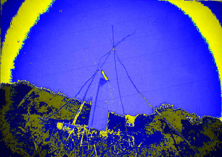 These are the two pinhole photos that I took (other people took a lot more) and have had scanned in, and then manipulated on my computer using a free program called Irfanview and with a cheap program called Serif PhotoPlus 7.